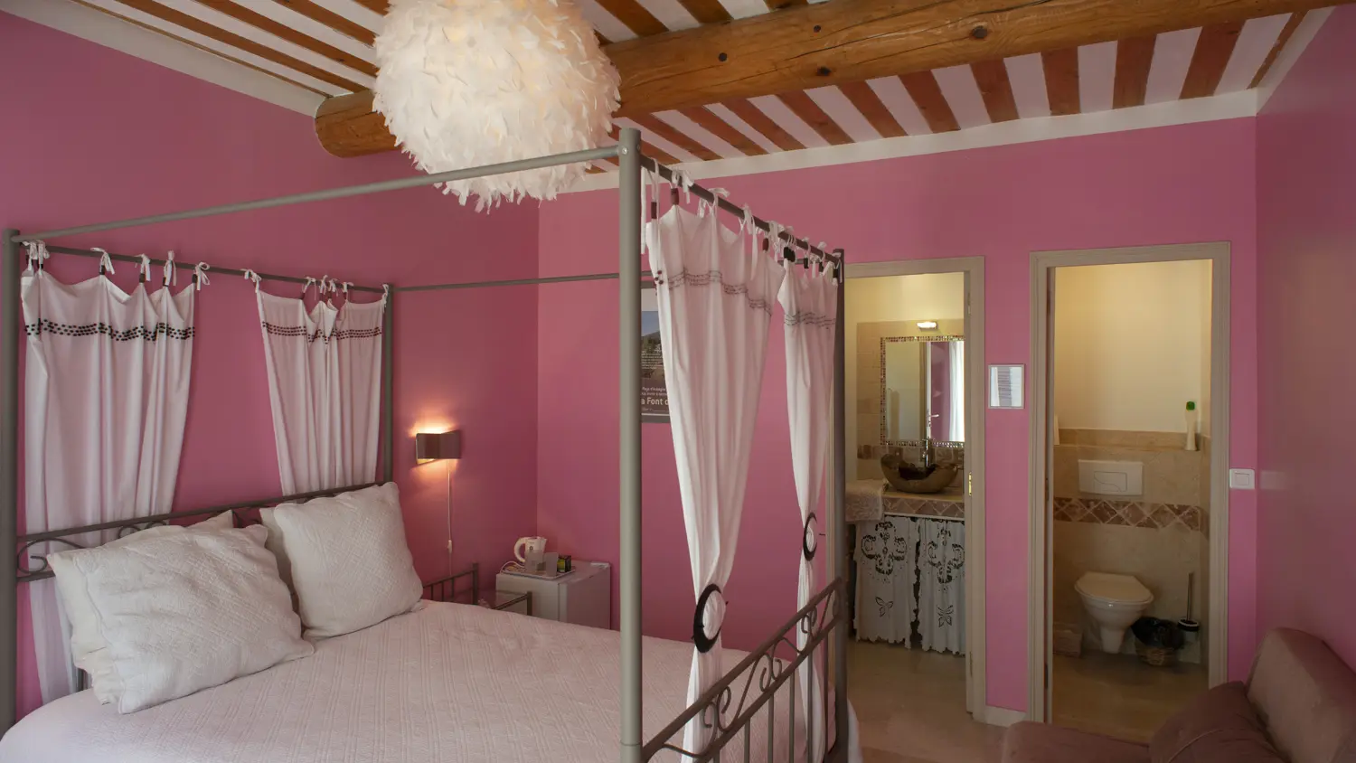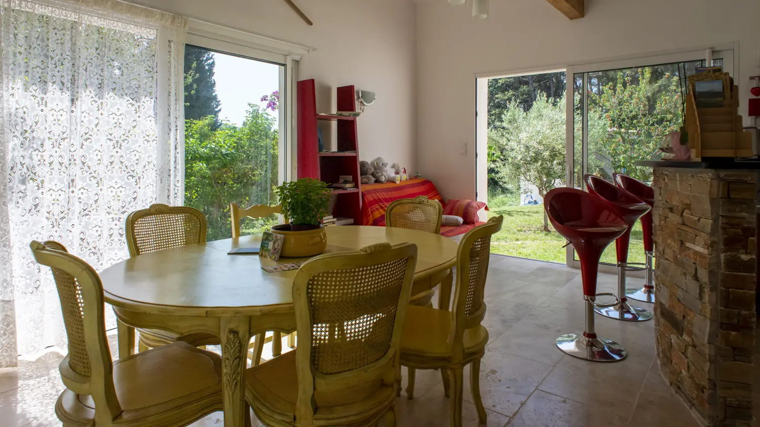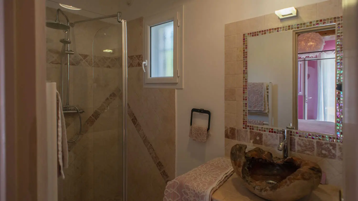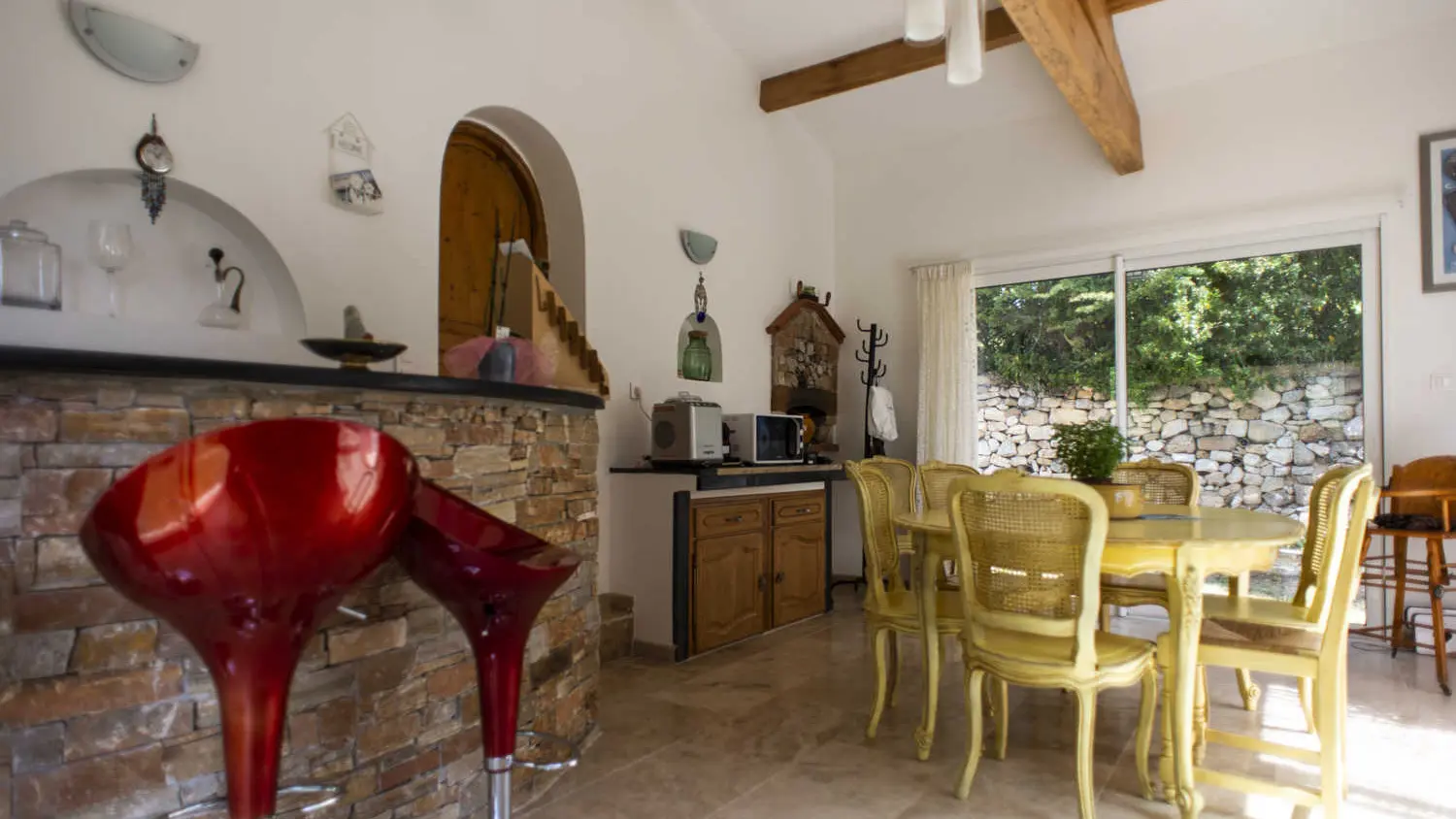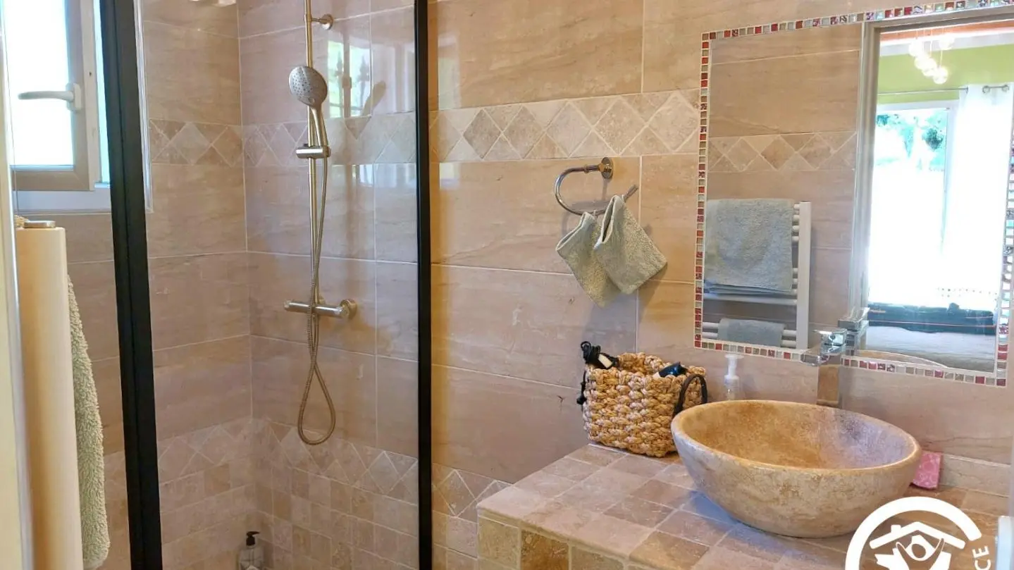 Nestled in a valley in the hills of Roquevaire, just a few minutes from Aubagne and Cassis beaches, the house "Les Manaux" welcomes you in one of its 3 guest rooms. Ground floor, each has its own terrace with garden furniture. See you for breakfast (organic and homemade) either on the common terrace during the summer or in the relaxation lounge during winter, still bright with its 3 bay windows. You can enjoy a coffee or a tea, placed at your disposal. Welcome to the room "Grozhibou", "Taoumé" or "Manon". Each (minimum 14 m²) has a bed for 2 people, a flat-screen TV, a small fridge "top", a full bathroom (wc).Electric heating. Wi-fi. Baby equipment on request. Pool (5m diameter) in front of the building of the rooms. Extra bed on request (from 10 to 30 € depending on the age of the additional person). Parking. Large land of 2000 m², shaded and green, terrace. The house was designed with ecological materials, with a good insulation to keep all winter a nice cool...