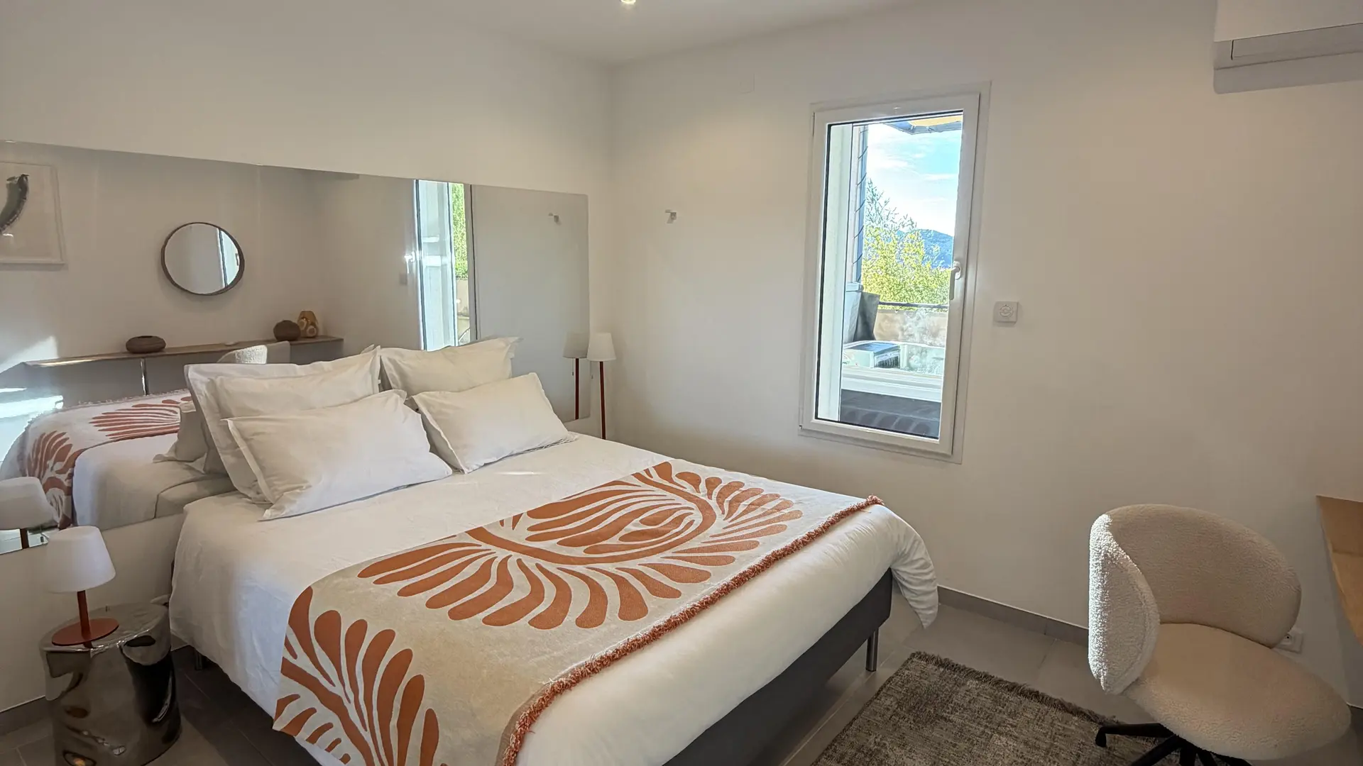The apartment comprises: a bright living room opening onto a fully private terrace with jacuzzi. A bedroom with a 160 × 200 cm bed, a modern shower room with large shower and washbasin, a large dressing room and separate toilet.